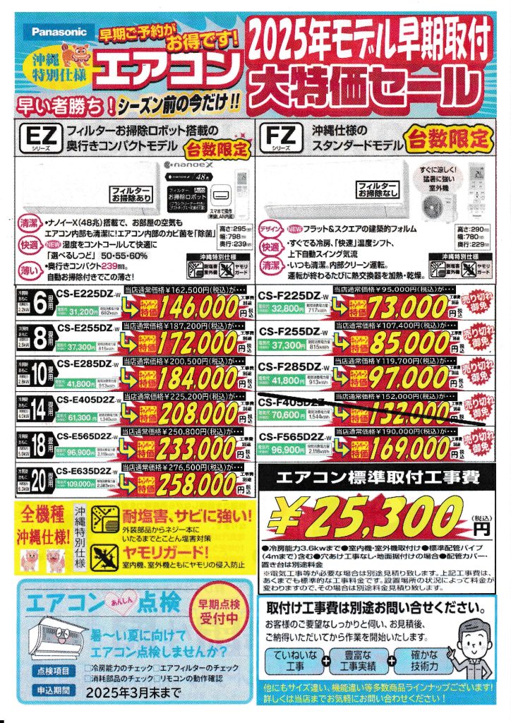 2025年モデルのエアコン「早期取付大特価セール」が始まりました📢シーズン前の今だからお得!!