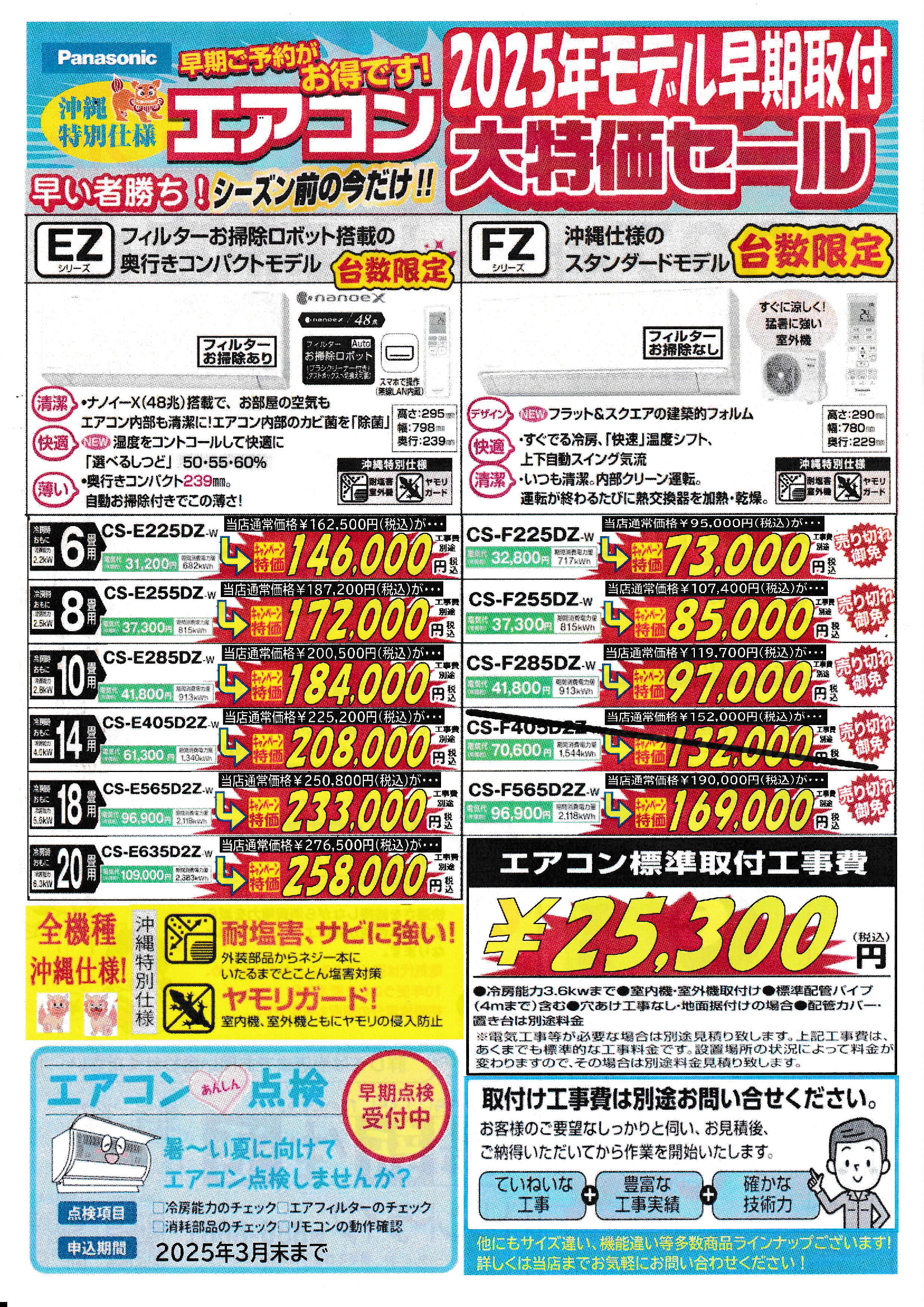 2025年モデルのエアコン「早期取付大特価セール」が始まりました📢シーズン前の今だからお得!!