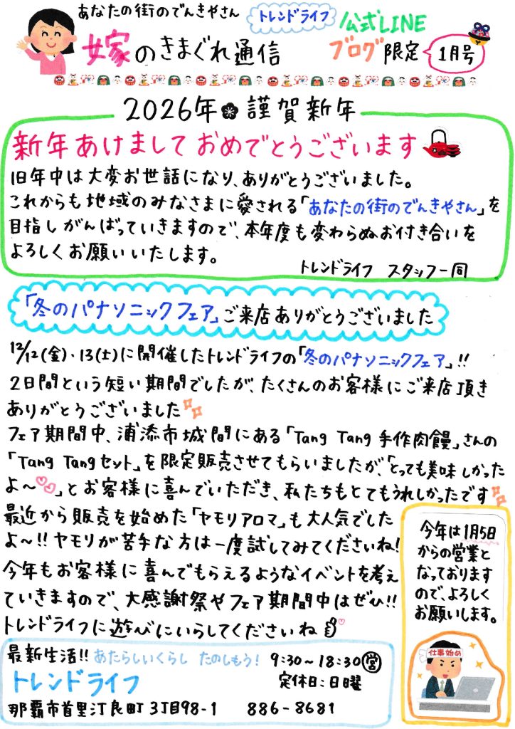 あけましておめでとうございます🎍✨あなたの街のでんきやさん「トレンドライフ」の安里(嫁)です🤗